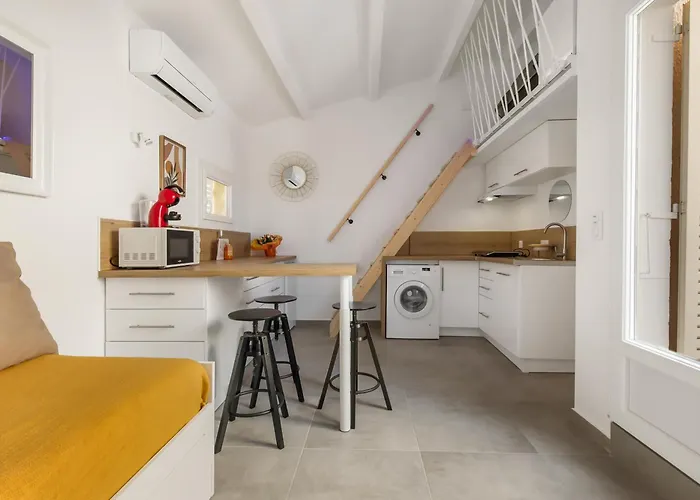 Das 27 m² große Apartment Cap D'Adge Suit'Appart 4 Saisons 27 M2 + 6 M2 Terrasse Agde liegt in einer Entfernung von 2 km vom Erlebnisbad Aqualand Cap d'Agde und bietet einen privaten Autoparkplatz für alle, die mit dem Auto anreisen. Das Apartment liegt 10 Minuten mit dem Auto vom Aquarium du Cap d'Agde entfernt und bietet einen Blick auf den Garten.